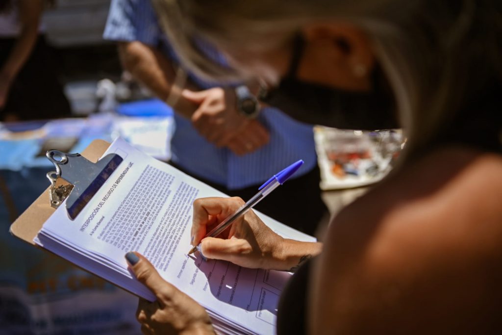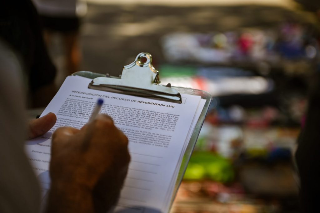 Aproximadamente a las 10 de la mañana, un equipo de integrantes de la FUM-TEP se instaló en la esquina de Minas y La Paz, una de las esquinas tradicionales de la Feria de Tristán Narvaja y desde allí se comenzó a dialogar con el público que pasaba por ahí. La secretaria general de la FUM-TEP, Elbia Pereira, lejos de quedarse detrás de la mesa instalada a modo de «puesto de firmas», aguardando que la gente se acercara, tomó la iniciativa y salió a repartir volantes y consultar a cada caminante si ya habían firmado para habilitar el referéndum contra los 135 artículos de la LUC.