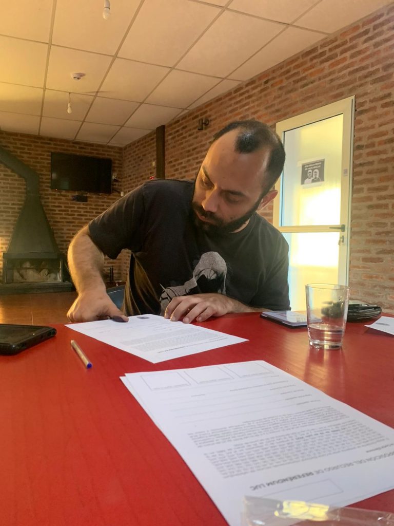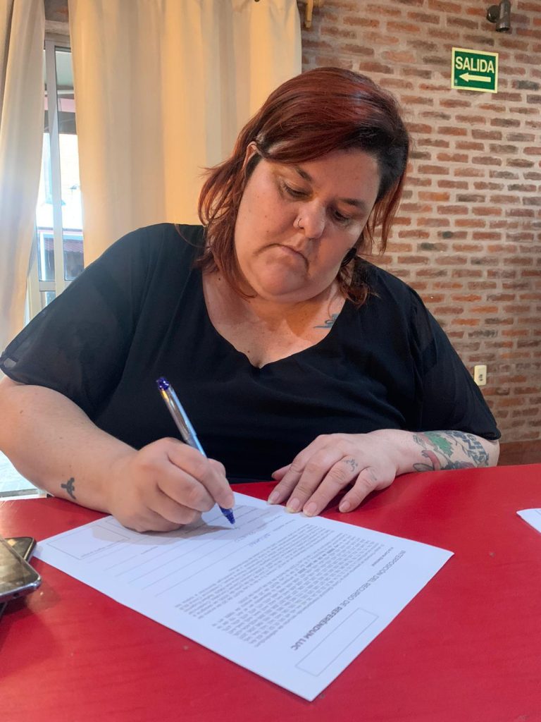 En una tarde agobiante de enero, Diego y Agustín charlan con el barrio. Ellos son militantes de SUTEL y la mesita instalada en la calle Miguelete es un punto de encuentro en el que confluyen compañeras  y compañeros de su propio sindicato así como también de otros para coordinar aspectos organizativos y de logística. Dicen que por ahora los que se arriman a firmar son «los convencidos» que ya saben que quieren ir contra la LUC.