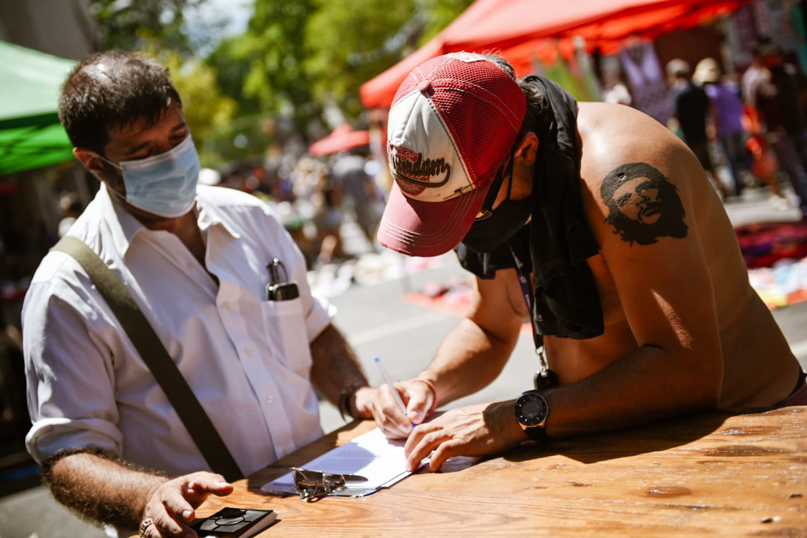 «Usted no me afloje», «vamos Fernando siempre adelante», «hay que derogar esta porquería que nos quieren meter», «acá ya firmamos todos», «¿qué te vendo Fernando?», «saludos a la familia querido». Este domingo, en el marco de la recolección de firmas para derogar 135 artículos de la LUC, el presidente del PIT-CNT recorrió la feria de Tristán Narvaja, ese emblemático espacio de Montevideo al que concurre desde hace cuarenta años.
