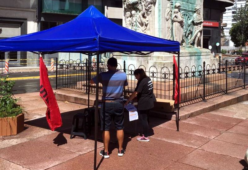 De lunes a viernes podés encontrar nuestro puesto junto a compañeres de AFGAP en 18 de julio y Barrios Amorín, entre las 11 y las 14 horas para firmar.