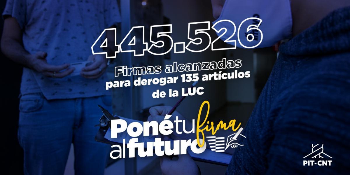 La Comisión Nacional Pro Referéndum anunció este lunes que ya se han recolectado 445.526, a falta de dos meses del vencimiento del plazo constitucional para llevar adelante la consulta popular.