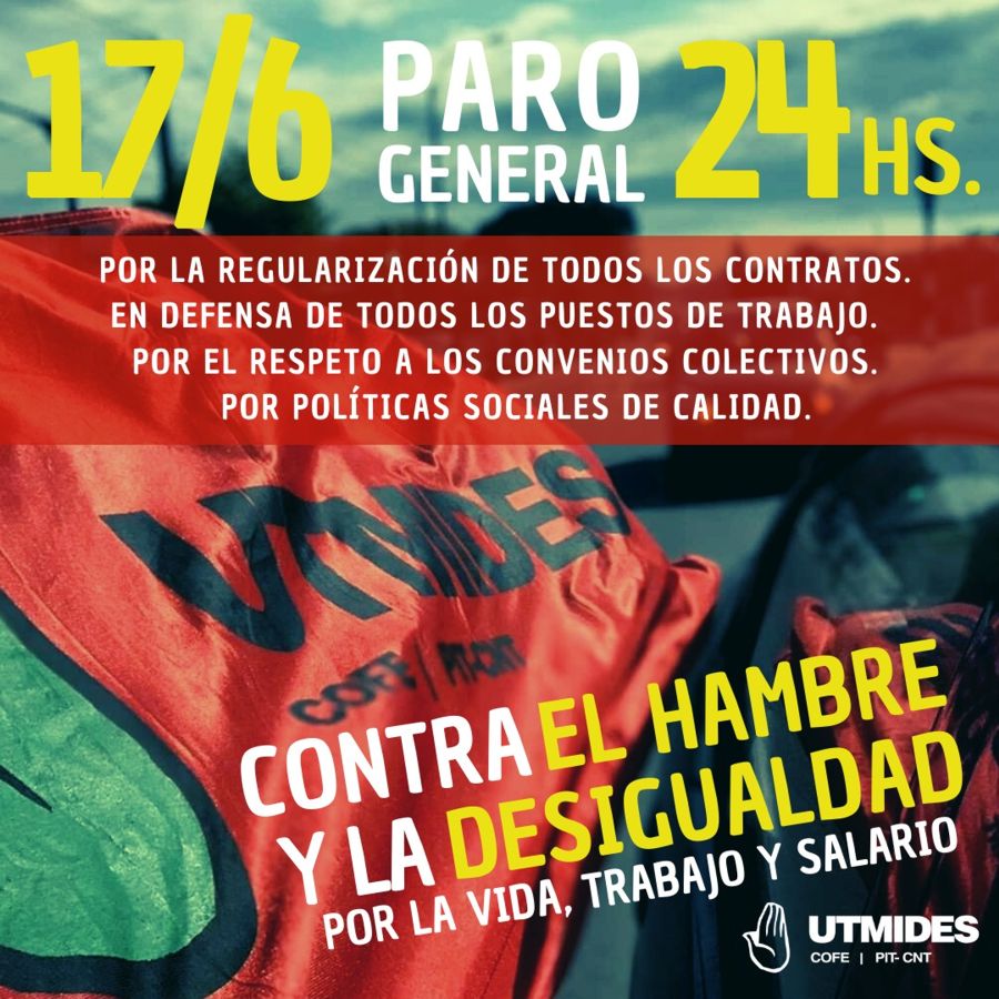 En el marco del paro general activo de 24 hs. convocado por el PIT-CNT para el jueves 17 de junio, Utmides se manifiesta: