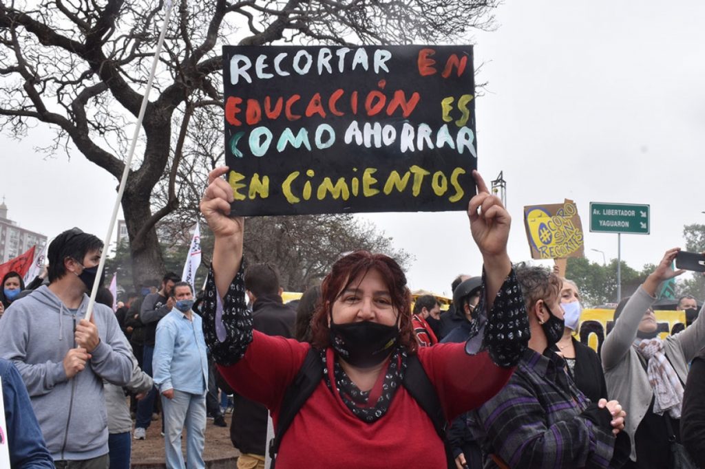 Según informes elaborados por Cooperativa Comuna, la Comisión de Presupuesto de la FeNaPES y en base a datos de ANEP, este año Secundaria sufrió un recorte tanto de personal como de horas con respecto a 2020, mientras que el salario de las y los docentes cayó ya tres cuartas partes del ajuste anual.