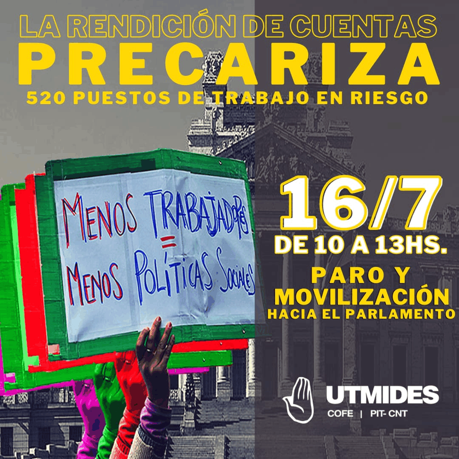 El viernes 16 la Comisión de Presupuesto integrada con Hacienda de la Cámara de Representantes recibirá a Utmides para dar nuestra visión sobre la Rendición de Cuentas que en su artículo 5 precariza aún más las condiciones de trabajo de 520 trabajadoras/es del Mides.