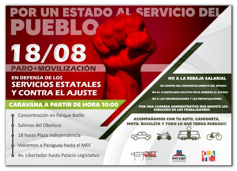 El miércoles paramos de 9:30 a 13:30 hs. y nos movilizamos en caravana sindical a partir de las 10 hs. desde el Obelisco hasta el Parlamento, en defensa de los servicios estatales y contra el ajuste.