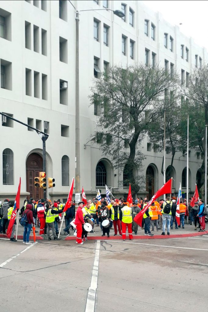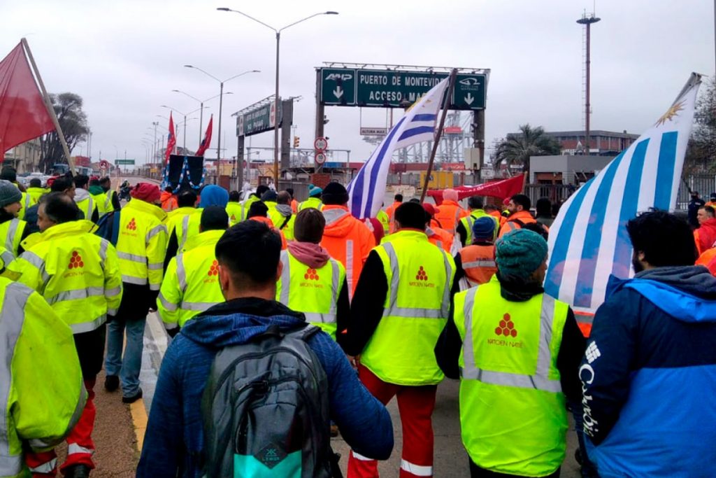 Como consecuencia de la falta de una respuesta efectiva de la empresa Katoen Natie que garantice por escrito el acuerdo bipartito, las y los trabajadores portuarios realizan un paro de 72 horas. En este contexto, esta mañana se realizó una movilización frente a la empresa y luego el grupo de manifestantes se trasladó hasta la Torre Ejecutiva. El paro y la movilización resueltos por las y los trabajadores de TCP logró la inmediata solidaridad y adhesión de sus pares de Montecon, ambos nucleados en el SUPRA.