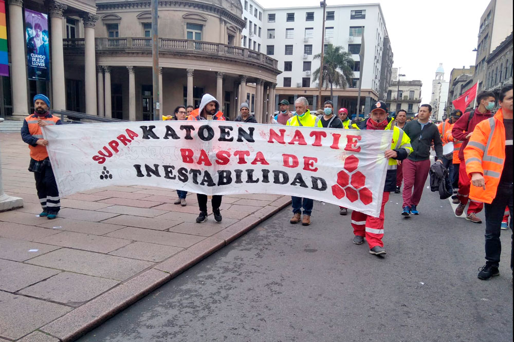 Según explicó al Portal del PIT-CNT, la integrante del ejecutivo del SUPRA, Vanessa Peirano, luego de meses de negociación de un convenio colectivo, la empresa se negó a firmar un acuerdo que deje establecido mínimos de jornales garantidos. El sindicato, así como el movimiento sindical todo, se han manifestado contrarios a la entrega del Puerto de Montevideo a la firma belga en régimen de monopolio que se extenderá por 60 años. Asimismo, Katoen Natie mantiene su negativa a firmar un documento con el sindicato en el que garantice que no se perderán los puestos de trabajo dignos y genuinos existentes al momento. La decisión que liga al país con la empresa surge como fruto del acuerdo secreto del gobierno del presidente Lacalle Pou con la firma belga.