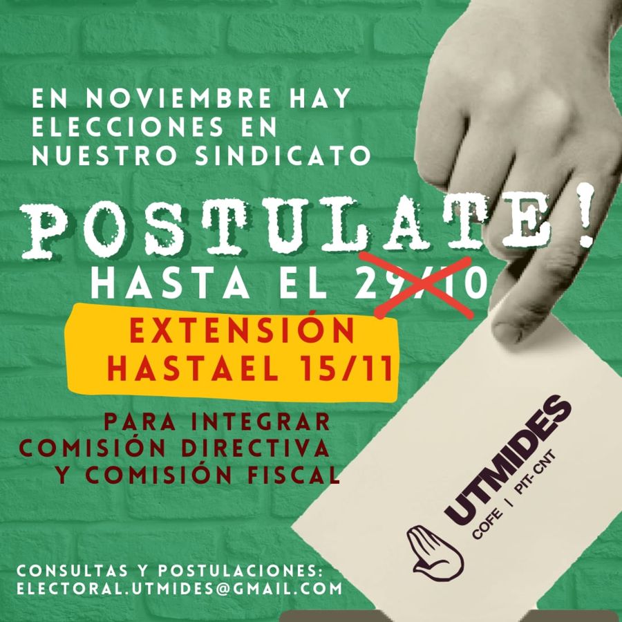 Del 23 al 25 de noviembre inclusive se realizarán las elecciones del sindicato en todo el país para elegir Comisión Directiva y Comisión Fiscal.