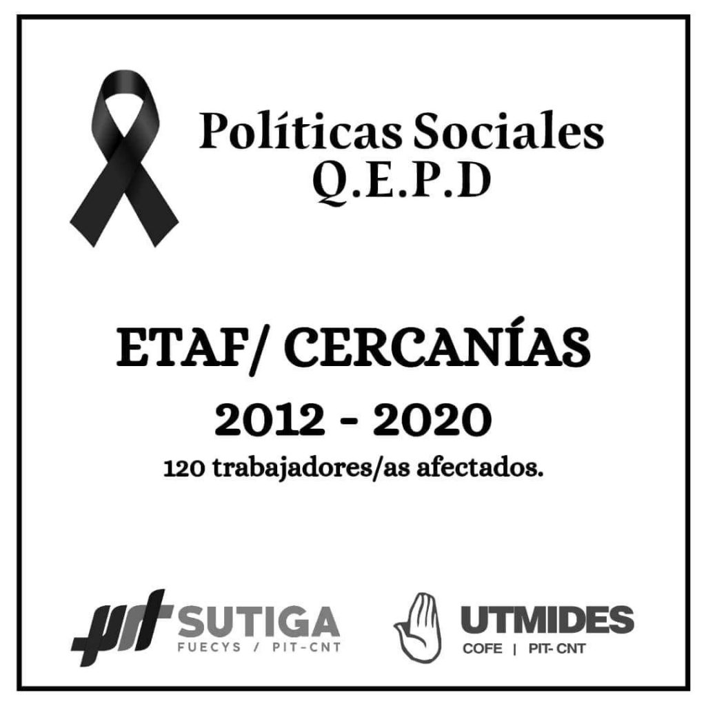 El anuncio del cierre de este programa implica la pérdida de unas 200 fuentes de trabajo y para el sindicato además representa que, en casi cien puntos del país, se cerrarán espacios de atención directa a la ciudadanía y de vínculo directo con el MIDES.