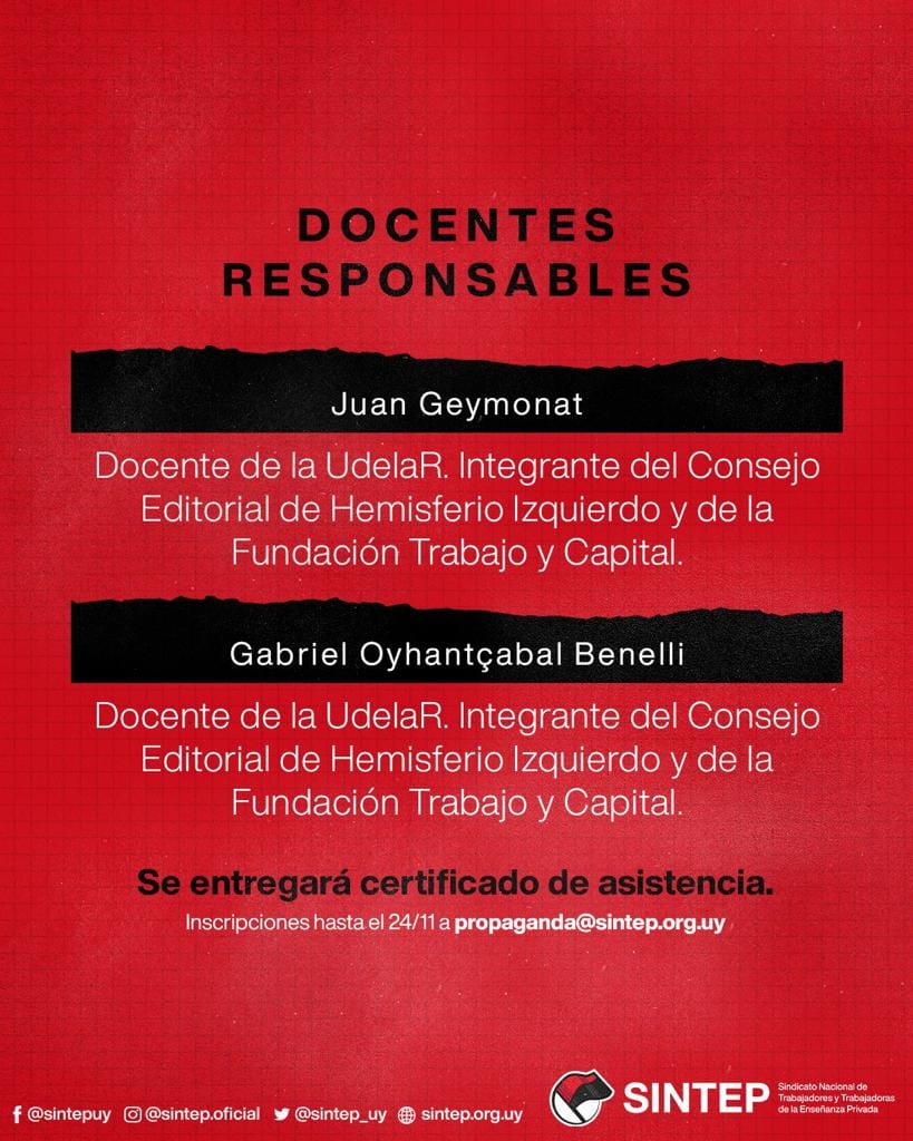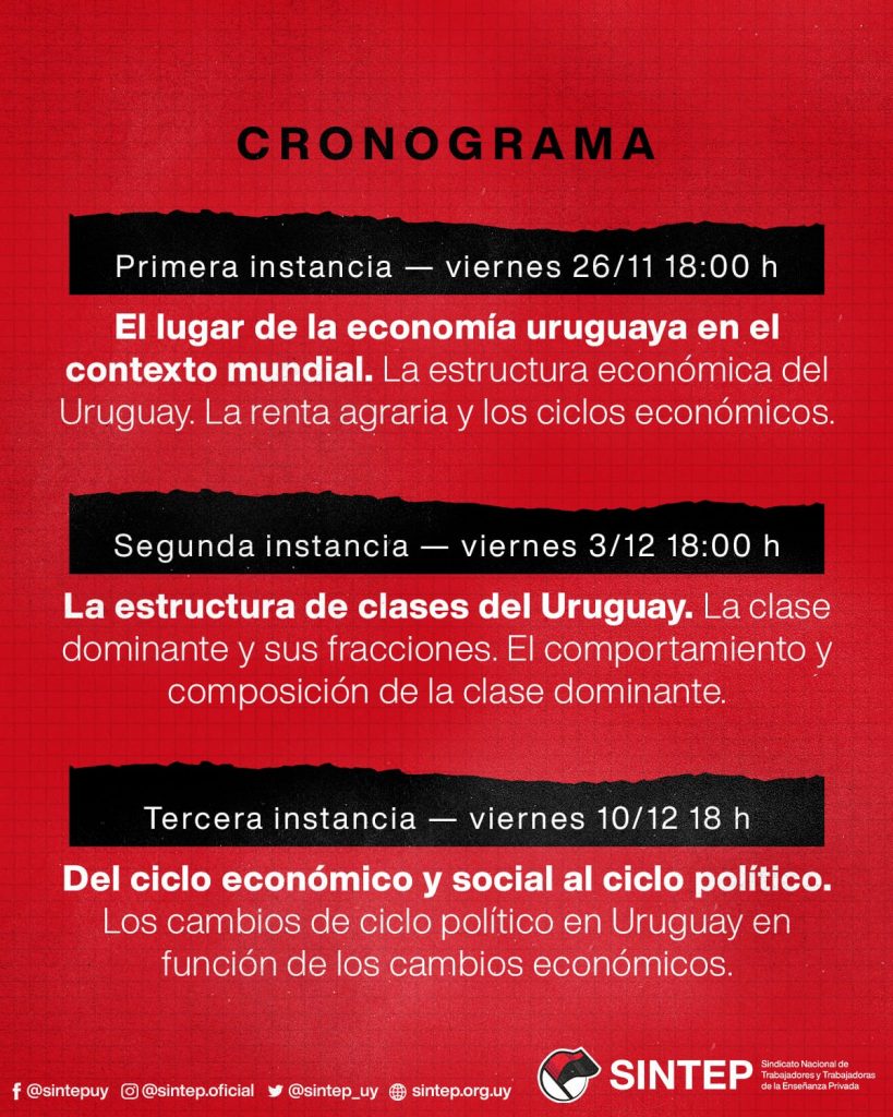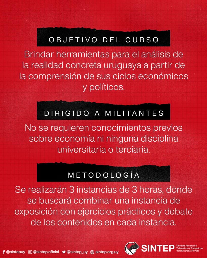 El curso que organiza el Sindicato Nacional de Trabajadoras y Trabajadores de la Enseñanza Privada (SINTEP), tiene como objetivo brindar herramientas para el análisis de la realidad concreta uruguaya, a partir de la comprensión de sus ciclos económicos y políticos.