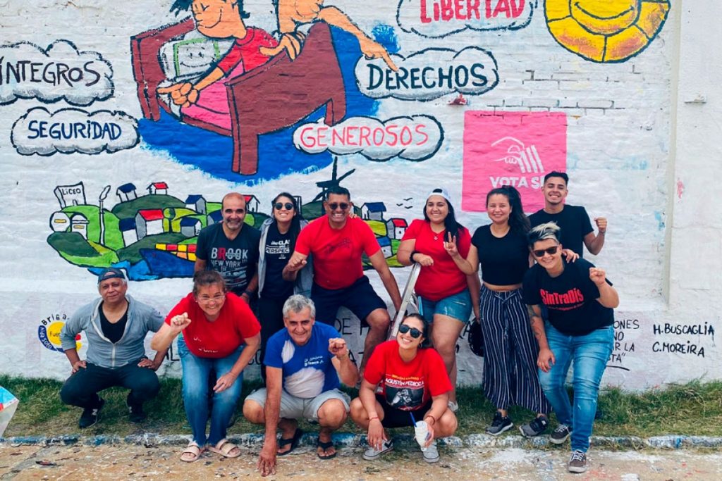 El sábado pasado pintaba lindo para descansar y dormir un poquito más, tal vez por aquello que los fines de semana son el momento justo para ponerse al día con las horas pendientes de sueño de la semana. Sin embargo, un grupo de jóvenes de la Federación Uruguaya de Empleados del Comercio y los Servicios (FUECYS) prefirió madrugar y encontrarse tempranito, en el entorno de las 7 de la mañana, para pintar un mural en la rambla sur, muy cerquita del Dique Mauá. Se reunieron en su sindicato donde les esperaba Álvaro, un militante que trabaja de fletero. Cuando lo convocaron para cargar las latas de pintura, los pinceles, la escalera y por supuesto a trasladar a las y los integrantes de la brigada, Álvaro no dudó en confirmar su presencia. Y de paso aclaró que no pensaba cobrar el flete. Donó su tiempo y aportó su herramienta de trabajo para la causa.