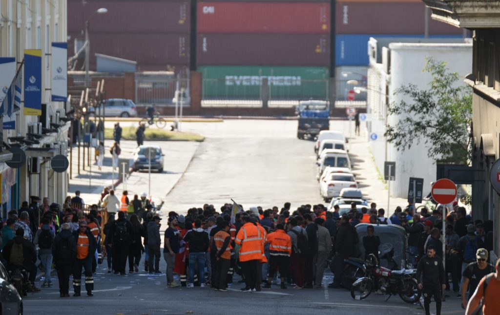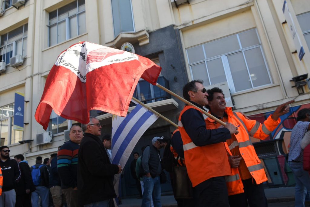Bajo una fuerte custodia de fuerzas de choque, este mediodía se realizó una movilización en rechazo y repudio de las medidas anunciadas por Montecon de despido masivo de 150 trabajadoras y trabajadores portuarios, como así también de la rebaja de hasta el 50% del salari de la totalidad de trabajadores que permanecen en plantilla.