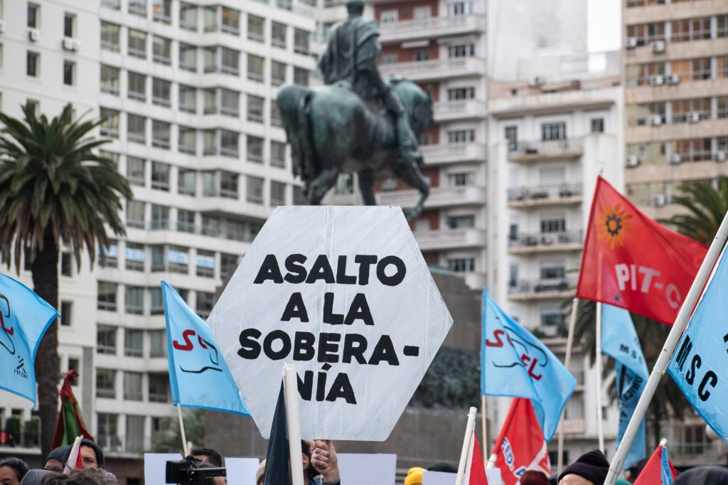 De manera contundente, distintas voces sindicales en la Plaza Independencia coincidieron en afirmar que el gobierno «miente» y ha comenzado a apurar la marcha en su plan neoliberal de privatizaciones y debilitamiento de las empresas del Estado. “Una vez más llega un gobierno herrerista y tiene que salir el pueblo uruguayo a defender las empresas públicas. No se han dado cuenta que, al igual que en 1994, el pueblo sostiene que las empresas son del Estado y tienen que estar en sus manos”, comenzó afirmando, el miembro de la dirección de la Federación de Funcionarios de OSE (FFOSE), Ramón Parra, en el acto de la Mesa Sindical Coordinadora de Entes (MSCE). El dirigente puntualizó varios de los inconvenientes que vienen sufriendo los distintos servicios que brindan las empresas del Estado por la falta de inversión, la falta de personal y la falta de planes de desarrollo. Asimismo, denunció que las autoridades del Ministerio de Vivienda no reciben a los trabajadores y por tal razón se los convocará al Ministerio de Trabajo y Seguridad Social (MTSS). En otro punto, el dirigente sindical reseñó la controversia planteada entre trabajadores y el directorio de OSE por la «alarmante falta de personal», que de acuerdo a cifras que maneja el sindicato, en los últimos cuatro años las pérdidas ascienden a más de 800 puestos. En el mismo sentido y como uno de los ejes centrales de la movilización se denunció el Proyecto Neptuno que el gobierno pretende imponer lo que ha encendido las luces de alerta de la FFOSE y todo el movimiento sindical.
