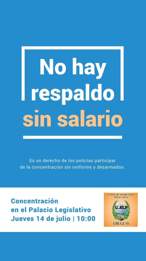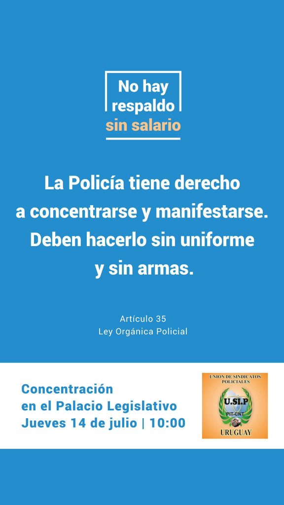 Este jueves 14 de julio, a partir de las 10 horas, la Unión de Sindicatos Policiales (USIP) realizará una concentración frente al Palacio Legislativo en reclamo de un salario digno. “La Policía Nacional se moviliza por un salario digno”, y lo harán sin uniformes y desarmados.