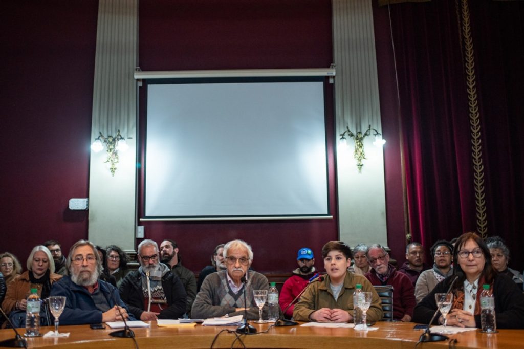 En la sala Maggiolo de la Universidad de la República, se presentó el relanzamiento de la Intersocial, definida como “una herramienta fundamental para frenar la ofensiva del gran capital”.