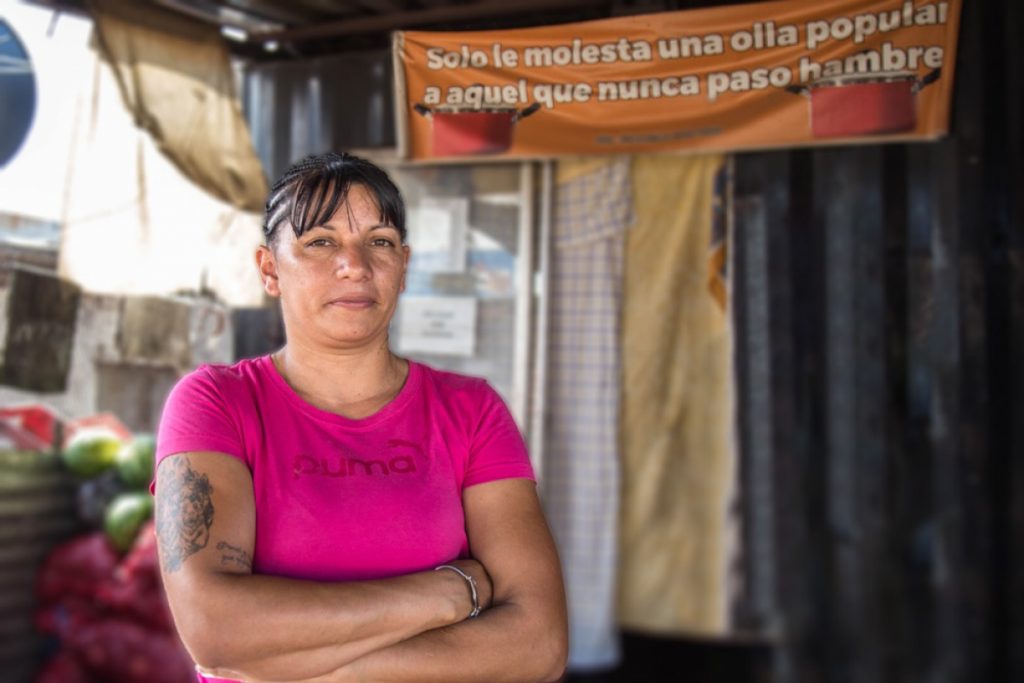 “Es fácil hablar si no se conoce la realidad. Invité muchas veces al ministro y a los del gobierno a que vinieran a visitar el barrio y a pisar el barro. Porque como verán, acá no tenemos ninguna comodidad para cocinar y todo lo que tenemos lo hicimos a pulmón. Esto era un baldío sucio y nosotros lo limpiamos. Lo cierto es que no ven nuestra realidad. Estuve con un caño roto ocho meses y la gente venía a recoger la comida entre el barro. Tuve que pelearme con el alcalde para que en menos de dos horas me hiciera los arreglos. Ahora estamos peleando por una calle, hace años que los vecinos la vienen peleando y no la podemos tener”.