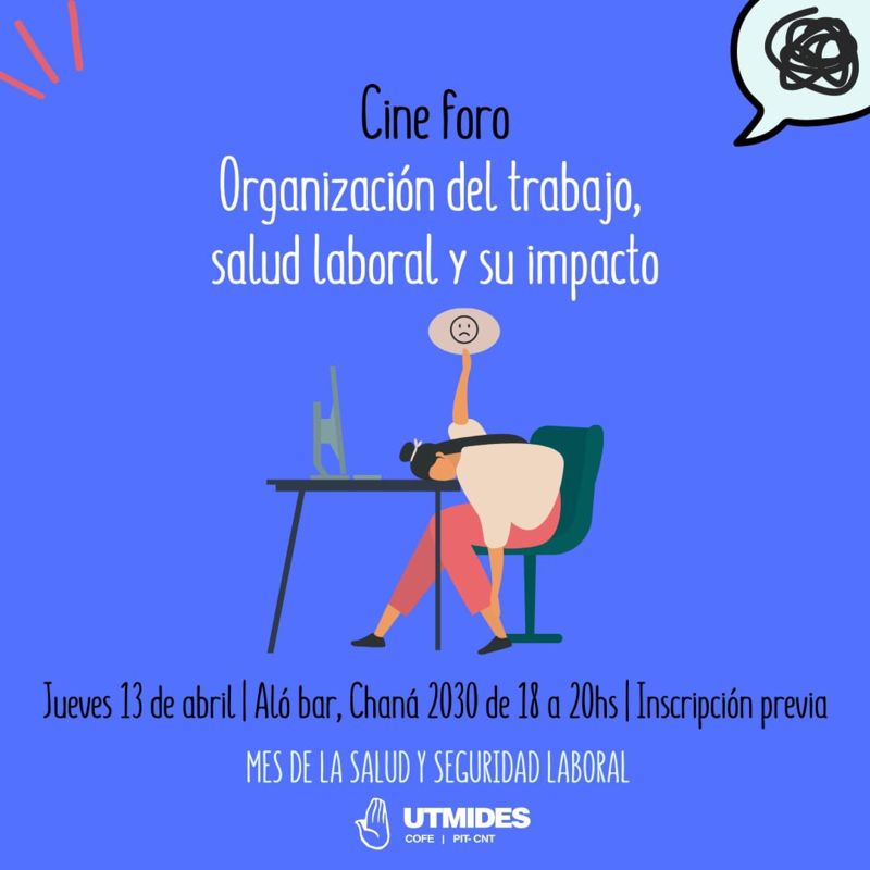 En el marco del Mes de la Salud y Seguridad Laboral, la Secretaría de Salud y Seguridad Laboral de Utmides invita a un cine foro a realizarse el jueves 13/4 de 18 a 20 hs. en Aló Bar (Chaná 2030 esq. Arenal Grande).