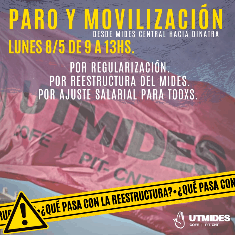 El lunes 8 de mayo paramos todas/os las/os trabajadoras/es del Mides en todo el país de 9 a 13 hs.