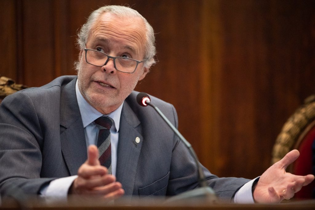 La mesa de debate a 50 años del Golpe de Estado estuvo integrada por Julio Sanguinetti, por el Partido Colorado, Pablo Iturralde, por el Partido Nacional, Fernando Pereira, por el Frente Amplio, Amira Fagúndez, por la FEUU y Marcelo Abdala, por el PIT-CNT.