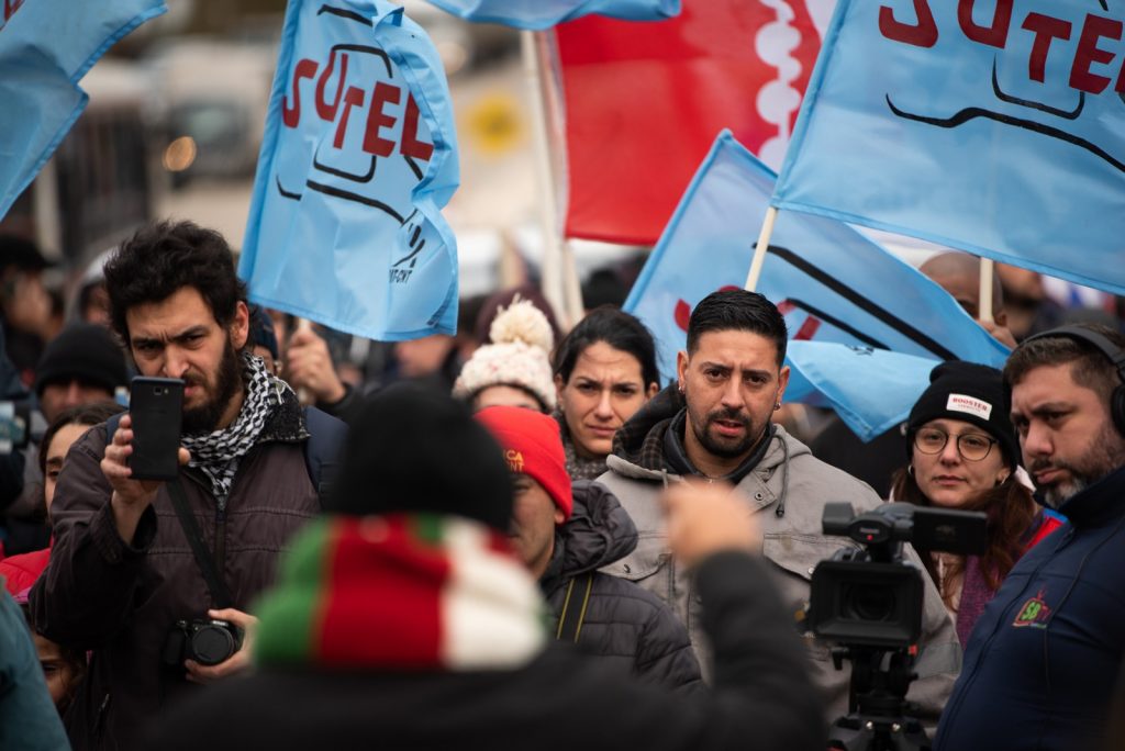 Rodeando la carpa de la resistencia de ALFAS, organización integrante de FUECYS, cientos de trabajadores de la FTIL, SUNCA, FUECYS, FENAPES, SUTEL y de distintos sindicatos, se hicieron presente para acompañar solidariamente a quienes hoy comenzaron la huelga, para intentar lograr la reincorporación de los trabajadores despedidos y alcanzar el fin de las sanciones y medidas antisindicales.