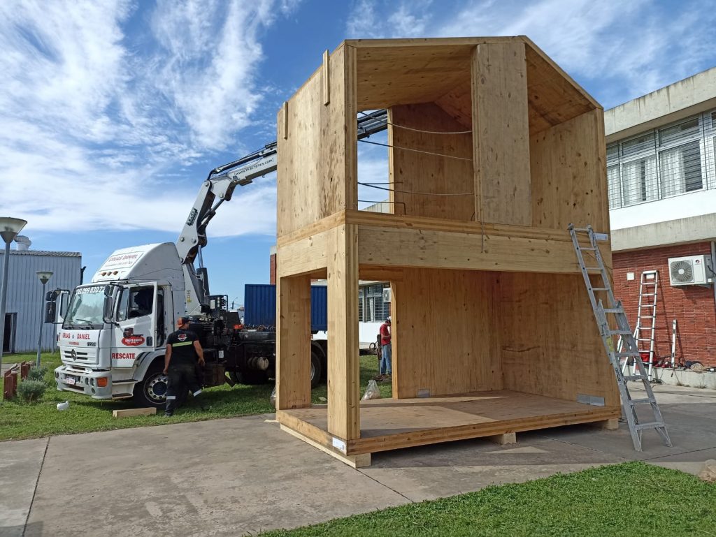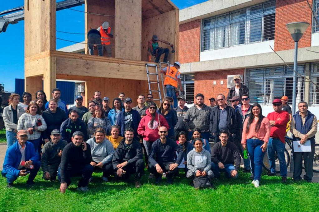 Romina Ferreira explicó que no se trata de un curso «liviano» sino que tiene sus complejidades y como parte del proceso de capacitación, hubo que trasladar una grúa a Tacuarembó y la empresa participante construyó una pequeña casa de madera, en tiempo récord, en un predio de la UTU, previsto para la ocasión. «Fue muy potente todo ese espacio de formación y trabajo práctico en territorio, con el sistema CLT, ante el asombro de la gente que participaba formalmente del curso y mucha gente más que se arrimó a presenciar el trabajo que estábamos realizando y la verdad, quedaron muy impactados por el despliegue y todo lo que pudo vivir».