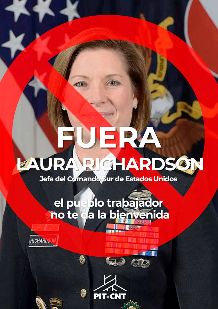 Ante la inminente llegada a nuestro país de la Jefa del Comando Sur de Estados Unidos, Laura Richardson, el PIT-CNT entiende pertinente señalar: