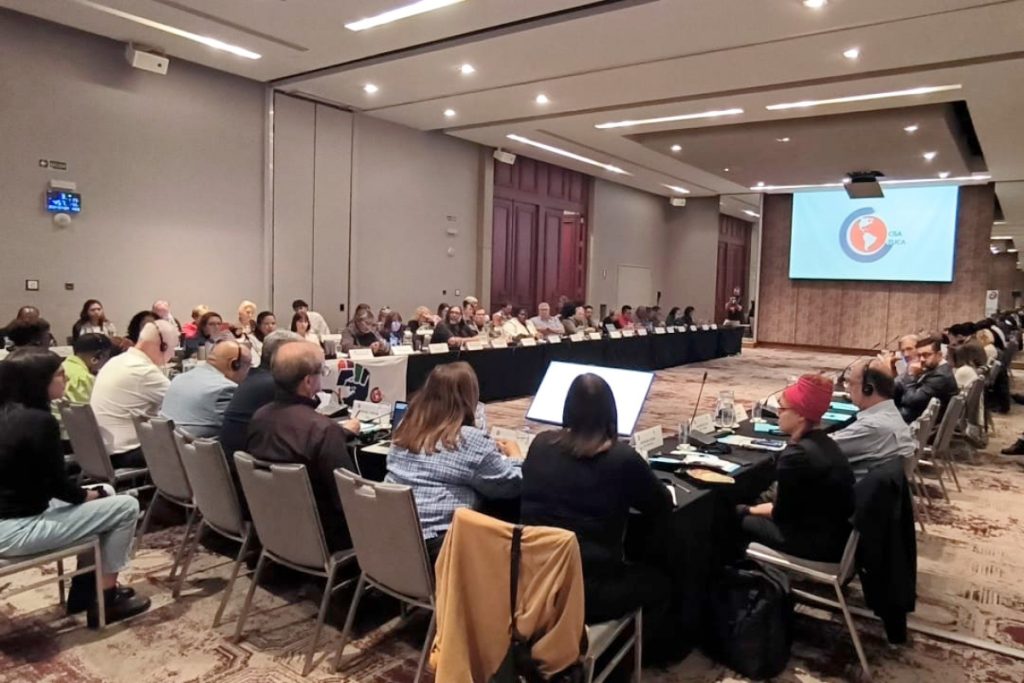 Pereira también se refirió al peso político de las centrales sindicales de América y remarcó que “las luchas no se dan en soledad, sino que el músculo se fortalece como organización cuando se trabaja en conjunto”.