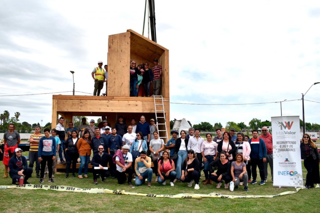 En tanto, la coordinadora del proyecto, licenciada Paula Leguísamo destacó la importancia de un proyecto que capacita a casi 300 personas en un sistema constructivo no tradicional en madera nacional.
