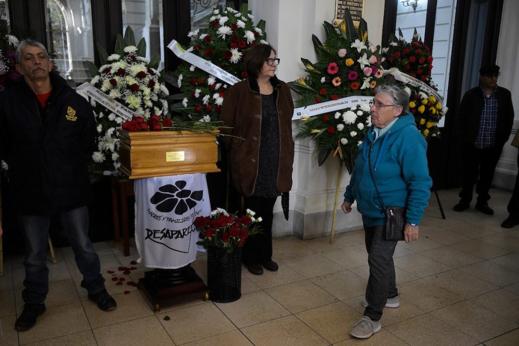 La Asociación de Madres y Familiares de Uruguayos Detenidos Desaparecidos, rodeada por miles de personas, homenajeó y despidió este jueves en la Universidad de la República (UdelaR) a Amelia Sanjurjo Casal, la compatriota secuestrada en 1977 cuyos restos fueron identificados el pasado 28 de mayo, tras las excavaciones desarrolladas en el Batallón 14.