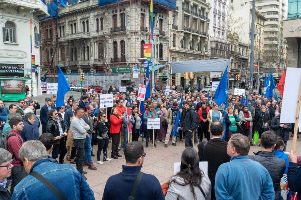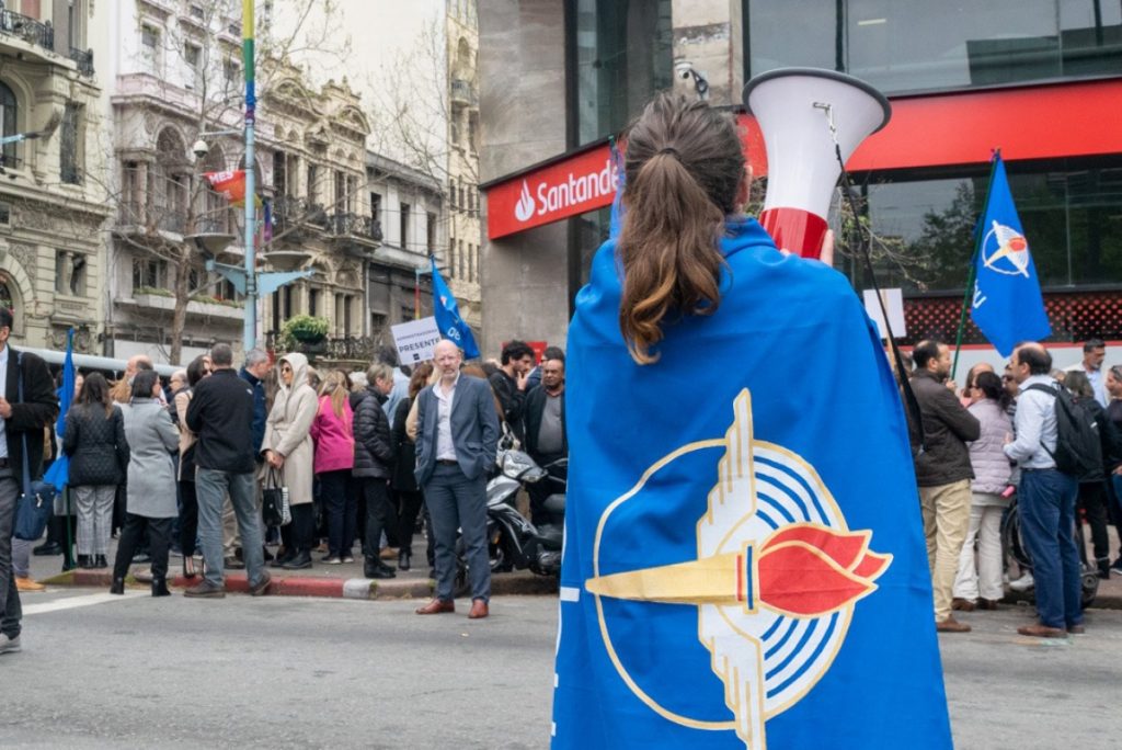En un comunicado de prensa emitido este martes, el sindicato bancario informó de la paralización de este martes y adelantó que sobre el mediodía se realizaría una concentración frente a la Casa Central del Banco Santander, ubicada en la Avenida 18 de Julio esquina Julio Herrera y Obes.