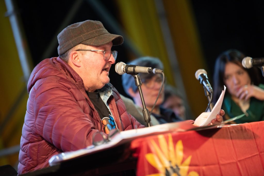 “Como bien sabemos, el Congreso expresa una síntesis dialéctica de múltiples espacios de discusión: las asambleas en los lugares de trabajo, los plenarios de delegadas y delegados, las reuniones de dirección, las conversaciones entre compañeras y compañeros de distintas filiales, las reflexiones de las corrientes, los acuerdos en la Mesa Representativa, la movilización, la ocupación del lugar de trabajo y el diálogo para buscar soluciones. Todo eso se amalgama y se pone a disposición de quienes participan, delegadas y delegados que han venido procesando esta construcción en el seno del movimiento obrero, y que ahora debemos sintetizar”, planteó.